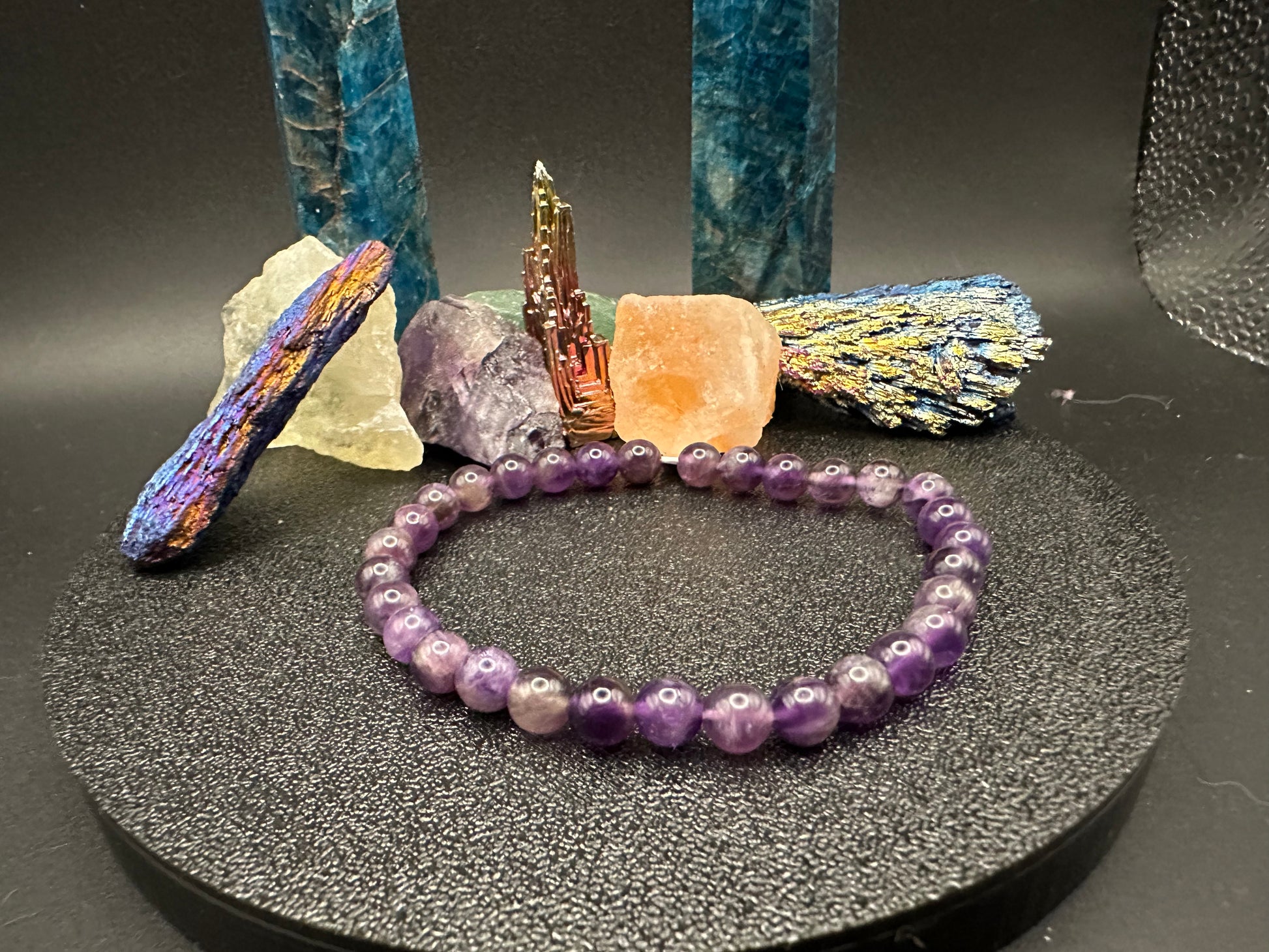 This bracelet is made from 6mm chevron amethyst beads, strung on durable stretch cord. Each genuine gemstone features beautiful layers of deep violet and soft lavender, creating the signature chevron pattern that makes this variety of amethyst so distinct. Handmade with care, this bracelet adds a calming and elegant touch to any outfit. Known for its soothing energy, amethyst is believed to promote balance, clarity, and peace of mind.